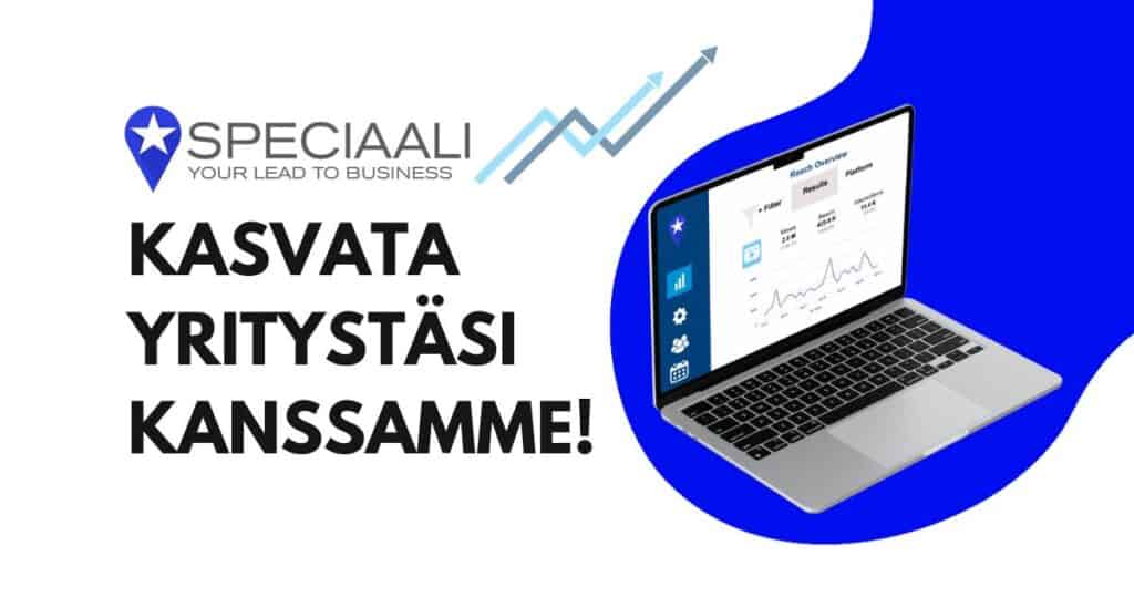 Yhteistyö Speciaalin kanssa tarkoittaa, että yrityksesi saa tuekseen kokeneet ja tuloksiin keskittyvät mainonnan asiantuntijat. Toimistokumppanina autamme sinua kasvattamaan liidimäärää, vahvistamaan näkyvyyttäsi ja parantamaan markkinointisi kannattavuutta pitkäjänteisesti.